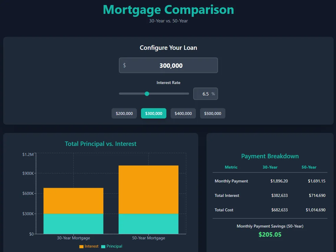 This program is not available. This tool was made to show the difference if a 50-year mortgage was introduced.